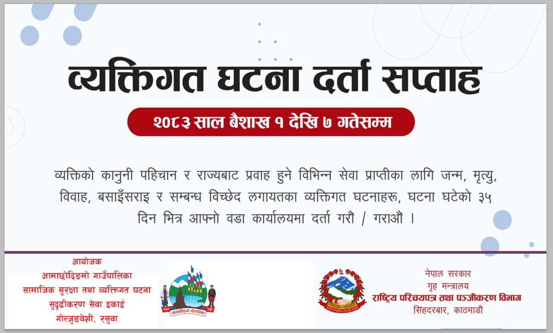 व्यक्तिगत घटनादर्ता सप्ताह (वैशाख १-७, २०८३)
