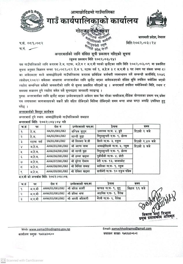 अन्तर्बार्ताको लागि संक्षिप्त सूची प्रकाशन गरिएको सम्बन्धी सूचना ।।