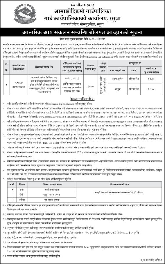 आन्तरिक आय संकलन सम्बन्धी बोलपत्र आव्हानको सूचना ।